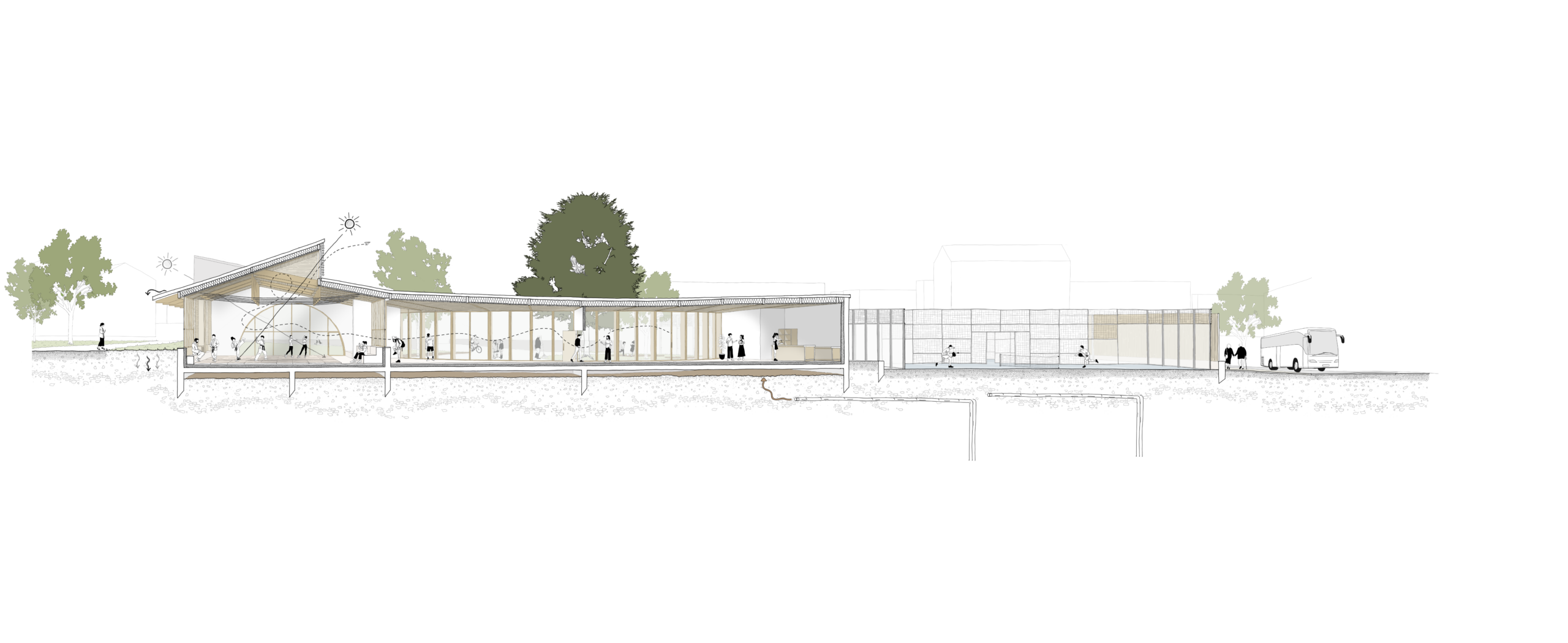 Le projet de transformation du site de l’ancien stade du Sauze s’inscrit dans la continuité urbaine des usages actuels, en réinterprétant l’héritage des anciennes fermes et manoirs implantés au cœur de vastes propriétés paysagères ; aujourd’hui transformées en équipement communal ouvert et fédérateur.